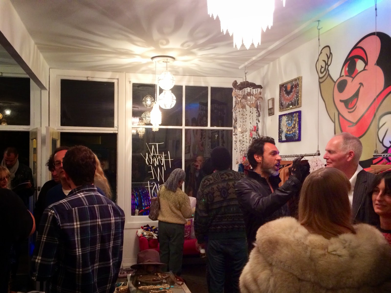 As more and more people crammed in the store, things got a bit more loose. At one point, I turned around to see Webster donning a pair of underwear - on his head - to the amusement of those standing around him. I didn't catch that story, but it looked like a good one. I was happy to find out that Webster is a Venice local, so I'll look forward to finding out more about him and his stories soon.